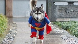Superman-asuisen koiran edestäpäin nähdessään saattaa joutua hieraisemaan silmiään. Sopivasta kulmasta katsottuna koira näyttää nimittäin pieneltä supersankarilta, jolla on kaksi jalkaa ja kädet.