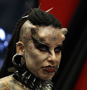 Hänet on tatuoitu lähes kauttaaltaan, hän on muuttanut silmiensä värin ja hampaat vampyyrimaisiksi. Lisäksi 35-vuotiaalla on sarvi-implantteja, joita hän haluaa jatkossa vielä lisätä.