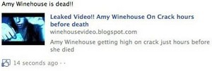 Viikonloppuna menehtynyt Amy Winehouse on saanut odotetusti liikkeelle myös Facebook-huijarit.