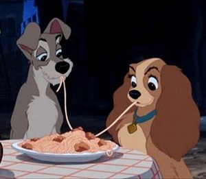 Kukapa ei muistaisi Disney-leffan, Kaunotar ja Kulkuri, spagettikohtausta.